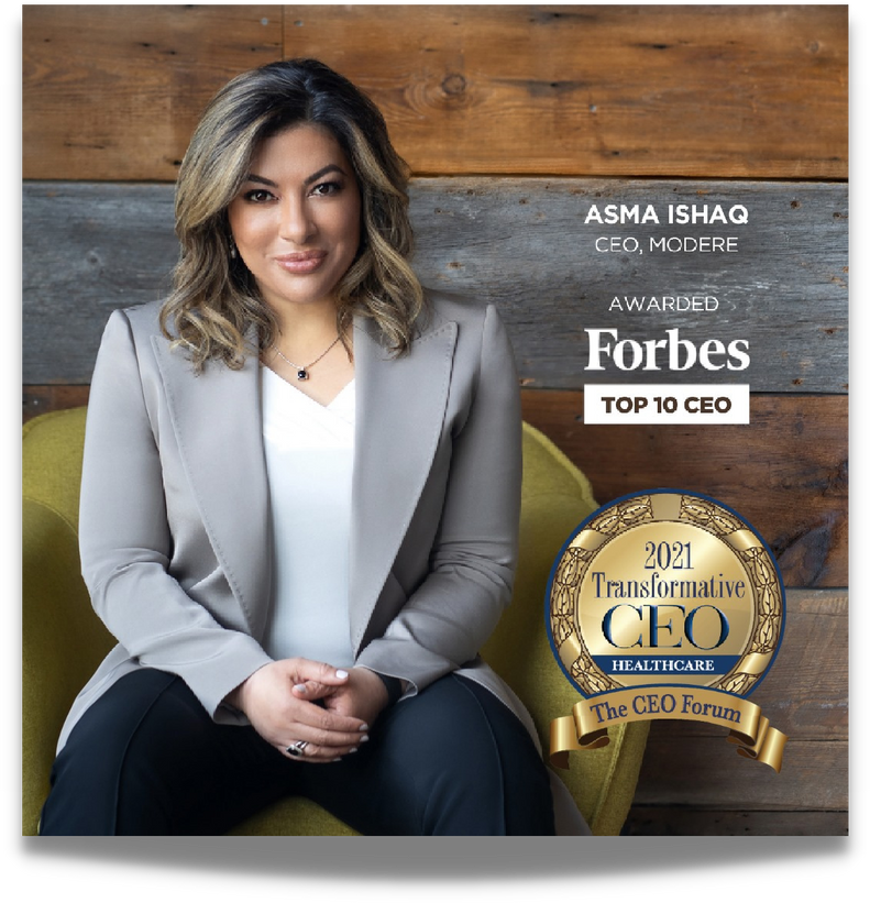 globálně udržitelnému získávání kolagenu, kvalitě a integritě složek. Jako Modere CEO byla Asma v roce 2021 oceněna časopisem Forbes jako top CEO